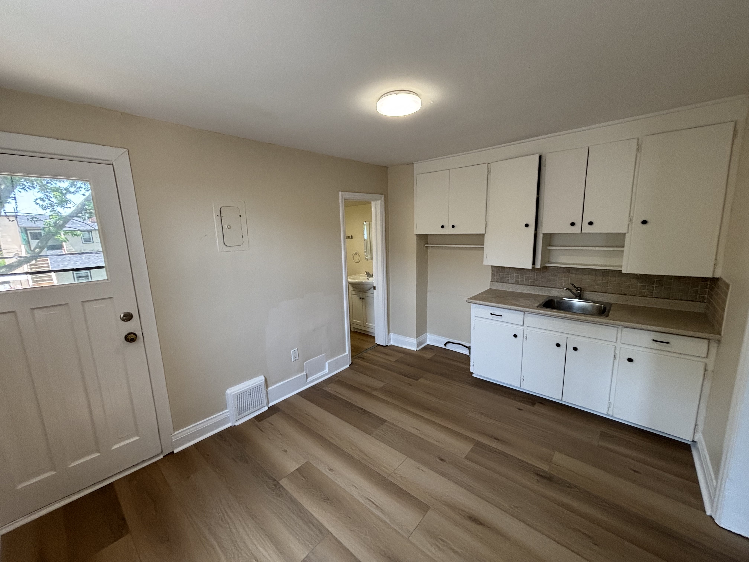 Comfortable second floor apartment that offers 1 bedroom, 1 bathroom, living area and kitchen. On-site laundry, 1 outdoor parking space. New flooring throughout the unit and painted in neutral tones.
